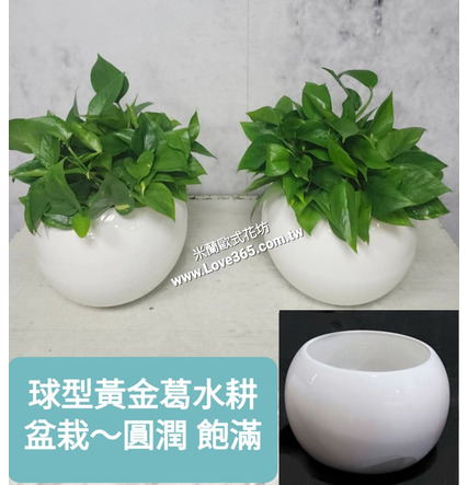 #1211球型黃金葛水耕盆栽一對